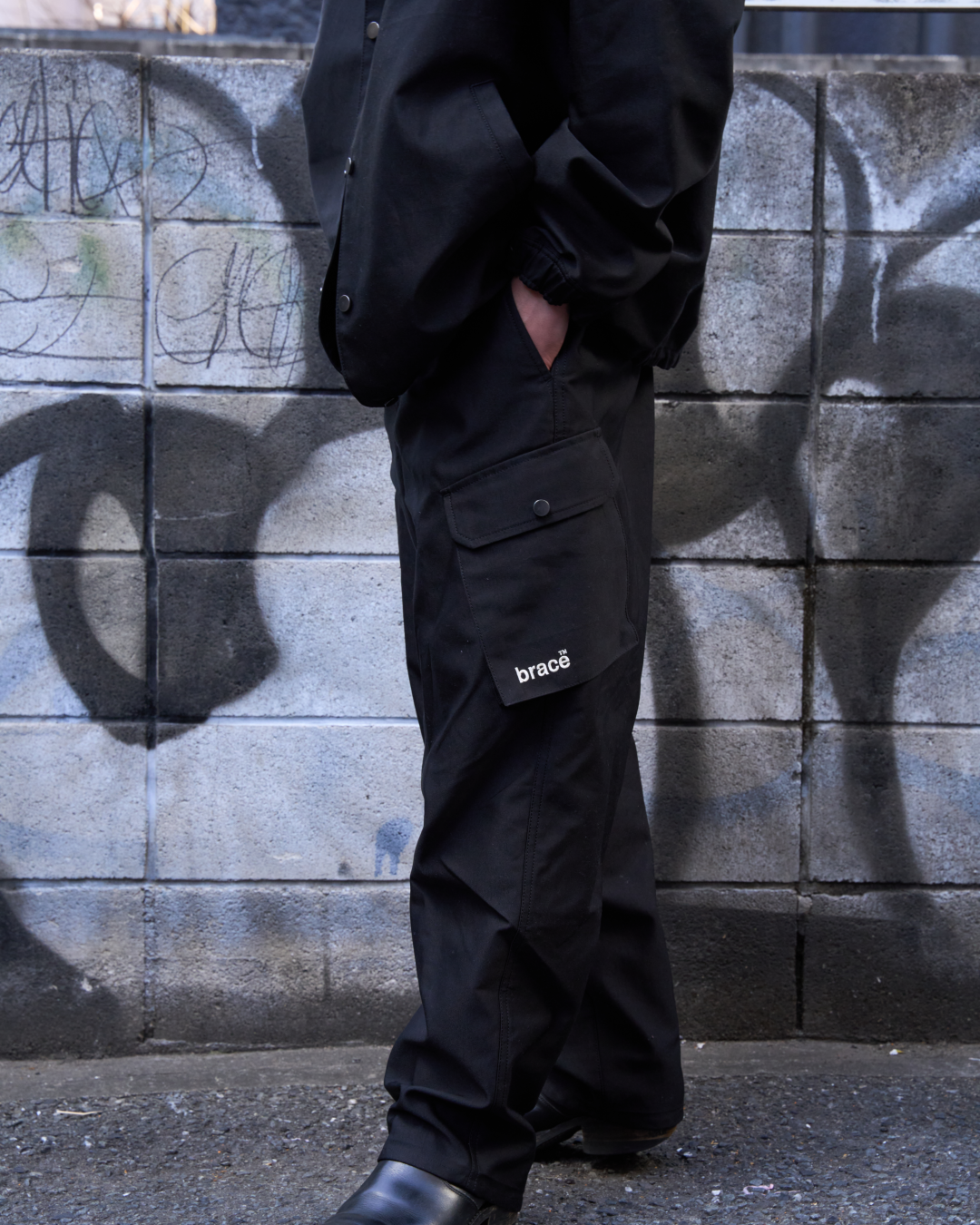 黒無地のカーゴパンツ